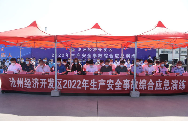 今年6月是第21個全國“安全生產月”。為切實提升全員安全素質、落實安全生產責任制,6月7日上午,滄州經濟開發區應急管理局以“遵守安全生產法,當好第一責任人”為主題,在我公司三分廠舉行了2022年安全生產月啟動儀式暨生產安全事故綜合應急演練。