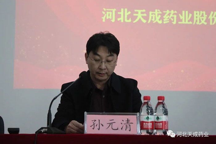 天成藥業(yè)總經(jīng)理兼渤海分公司總經(jīng)理孫元清宣讀《2022年度先進(jìn)個(gè)人賀先進(jìn)集體評(píng)選結(jié)果》