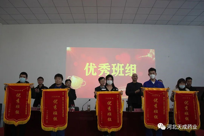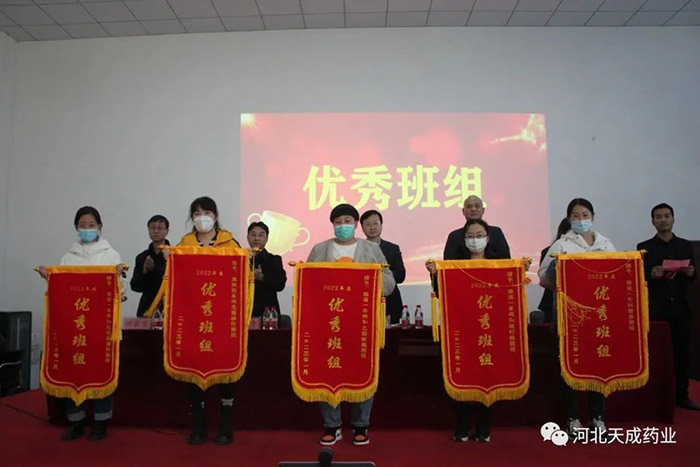 卯門生紫氣,兔歲報(bào)新春!告別難忘的2022,迎來全新的2023,回首過去的這一年奮斗路,展望天成新前程!2023年2月4日,天成藥業(yè)2022年度表彰大會(huì)暨迎元宵節(jié)文藝匯演,在三分廠活動(dòng)室隆重舉行!