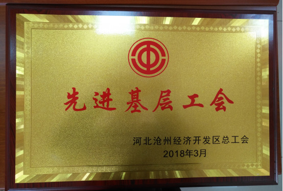 經滄州經濟開發區總工會綜合評比,研究決定,我公司工會委員會被授予“2017年度先進基層工會組織”榮譽稱號。公司工會主席徐福河被授予“先進基層工會主席”榮譽稱號,公司工會專員李艷萍被授予“先進基層工會工作者”榮譽稱號。