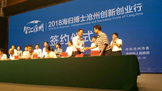 8月8日,“智匯滄州——2018海歸博士滄州創(chuàng)新創(chuàng)業(yè)行”簽約儀式在滄州國際會(huì)議中心舉行。董事長兼總經(jīng)理王振剛應(yīng)邀參加盛會(huì)并與兩名海歸博士成功簽約。
