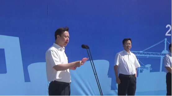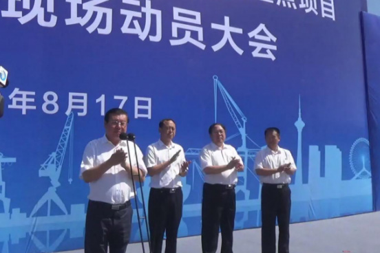 滄州市委常委,渤海新區(qū)黨工委書(shū)記、管委會(huì)主任張國(guó)棟宣布項(xiàng)目集中開(kāi)竣工。