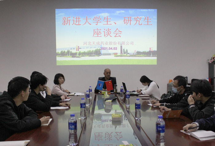 座談會(huì)在輕松、愉悅的氛圍中進(jìn)行,來自不同地方、不同學(xué)府的40位青年大學(xué)生結(jié)合自身學(xué)習(xí)經(jīng)歷進(jìn)行了簡單的自我介紹。“擊水三千已揚(yáng)帆,鵬程萬里正當(dāng)時(shí)”,在聽取新進(jìn)大學(xué)生的發(fā)言后,顥總首先對大家加入天成藥業(yè)表示熱烈歡迎,并向大家講述天成藥業(yè)五十年的發(fā)展歷程及企業(yè)的發(fā)展戰(zhàn)略,讓大家對企業(yè)有了更為深入的了解。顥總強(qiáng)調(diào),藥品關(guān)系到人類生命健康,他要求大家要有愛心、有責(zé)任心,要認(rèn)真學(xué)習(xí)《藥品管理法》,這體現(xiàn)出一個(gè)合格制藥人的責(zé)任。