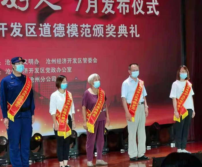 6月29日,滄州經濟開發區黨政辦公室下發《關于開展道德模范推薦評選活動的通知》,動員轄區各單位、村莊、企業推薦道德模范。截止到7月6日,共推薦了13名候選人。7月12日,開發區黨政辦、人社局、紀工委、社發局、總工會相關負責人組成評選小組對候選人進行評選,共有5名同志被評選為滄州經濟開發區道德模范。我公司固體車間主任唐岳圣、輸液二車間職工劉五妹在列。